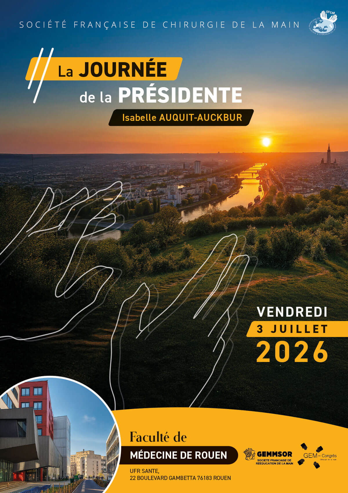 Le 3 juillet j’aurai le plaisir de vous accueillir dans l’enceinte la plus récente de la faculté de médecine de Rouen pour « la journée de la présidente ». Comme une avant-première du congrès de décembre, les thèmes développés seront variés et tournés vers l’interdisciplinarité. Il y aura ainsi des miniconférences avec des intervenants experts dans leur discipline dont quelques surprises…Et des cas cliniques interactifs. Je vous espère nombreux à cette journée qui se clôturera par un moment convivial en Bord de Seine !