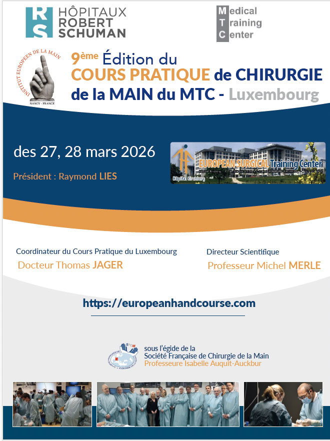 Ne manquez aucun événement clé en chirurgie de la main. Innovations, échanges et réseau professionnel vous attendent. Participez aux congrès et enrichissez votre pratique et votre savoir.