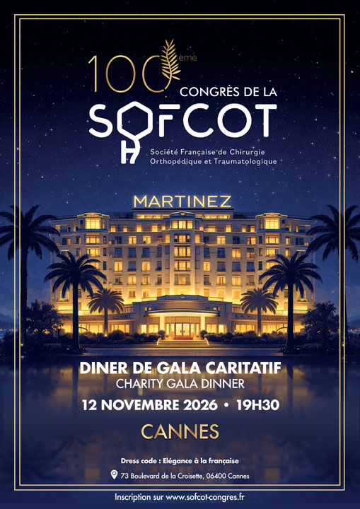 le 100ème Congrès de la SOFCOT, qui se tiendra à Cannes du 11 au 13 Novembre 2026.